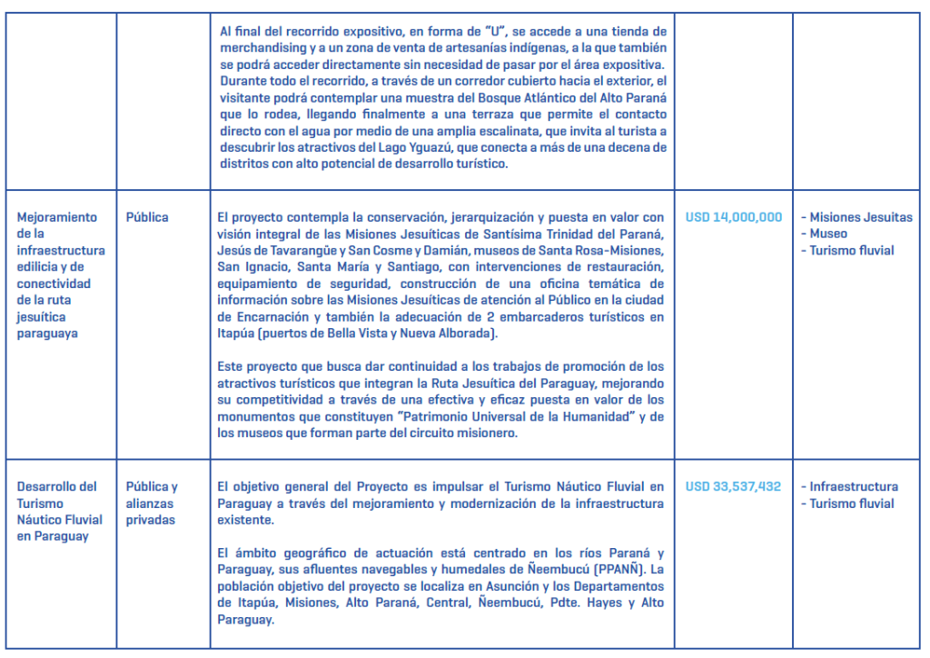 Este proyecto que busca dar continuidad a los trabajos de promoción de los atractivos turísticos que integran la Ruta Jesuítica del Paraguay, mejorando su competitividad a través de una efectiva y eficaz puesta en valor de los monumentos que constituyen “Patrimonio Universal de la Humanidad” y de los museos que forman parte del circuito misionero.