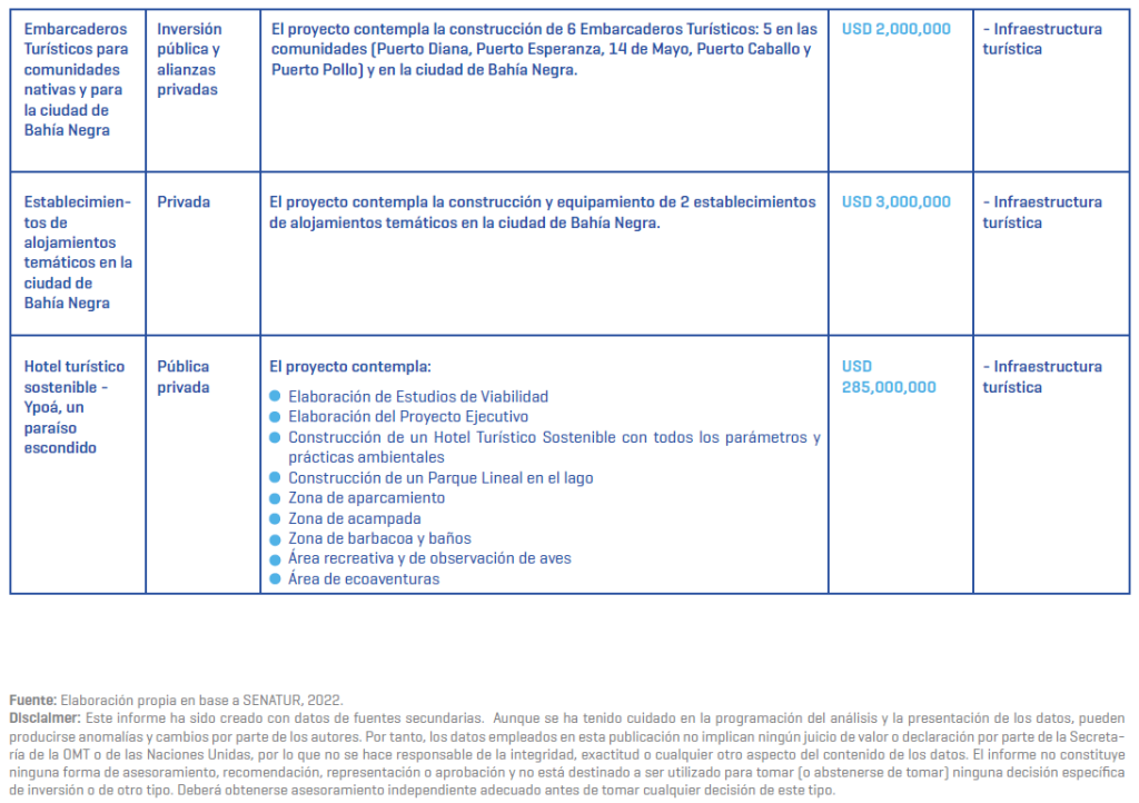 En este sentido, es importante la coordinación interinstitucional de instituciones como la SENATUR, o como el Ministerio del Ambiente y Desarrollo Sostenible (MADES) institución nacional responsable de la administración de las principales leyes ambientales. Este tipo de coordinación es relevante en los posibles usos turísticos de numerosos recursos, cuyo aprovechamiento turístico depende de la concesión de permisos, asignación de personal, concesión o revocación de vedas, para generar esfuerzos estratégicos de protección de áreas indígenas y biodiversas; sobre todo coordinando esfuerzos con proyectos estratégicos de energía eléctrica para poder desarrollar efectos que promuevan territorios o destinos turísticos potenciales.