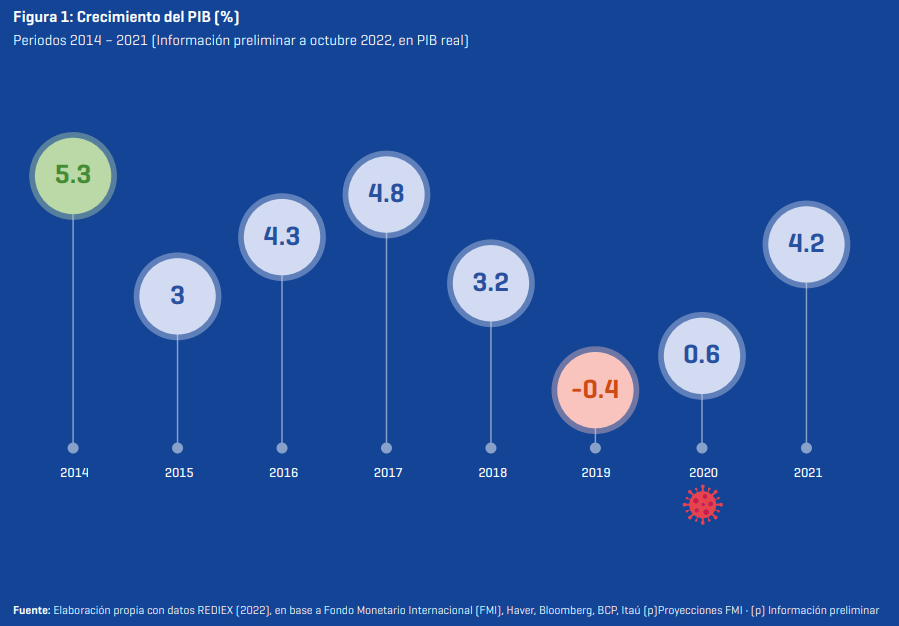 Es importante remarcar que el 2021, en la región de Latinoamérica y el Caribe, el crecimiento estimado fue de un 6.2% en promedio. De acuerdo con la Comisión Económica para América Latina y el Caribe (CEPAL), esta dinámica del crecimiento en 2021 estuvo liderada por la demanda interna, producida por la flexibilización gradual de las medidas de contención de la pandemia, lo que permitió que la actividad económica se reactive.