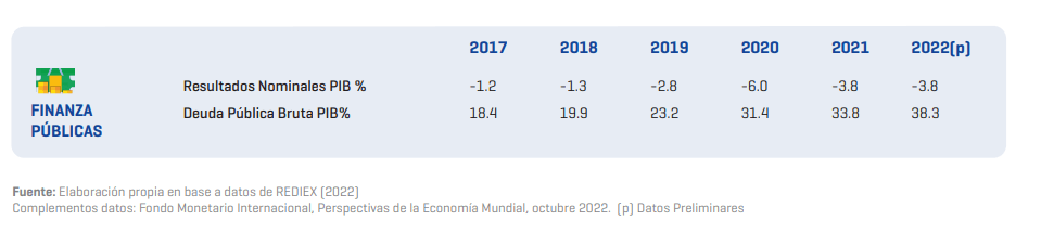 Posteriormente, en 2012 se introdujo el impuesto a la renta personal (alícuota de 10%) y en 2013 se promulgó la Ley de Responsabilidad Fiscal (LRF) que fija el límite del déficit fiscal autorizado en el 1.5% del PIB.6 El déficit público se redujo al 0% en 2021, por lo que se prevé la aplicación de una política fiscal prudente desde el Gobierno. Esta lógica de intervención, tiene un enfoque de balance estructural, la cual podría contribuir a reducir la volatilidad macroeconómica del país.7